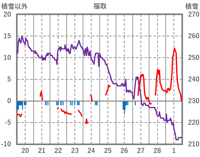 | 日 | 時 | 気温 | 降水 | 風向/風速 | 日照 | 積雪 | 降雪 |