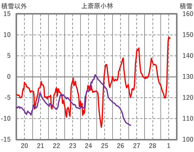 | 日 | 時 | 気温 | 降水 | 風向/風速 | 日照 | 積雪 | 降雪 |