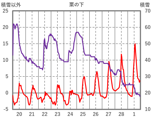 | 日 | 時 | 気温 | 降水 | 風向/風速 | 日照 | 積雪 | 降雪 |