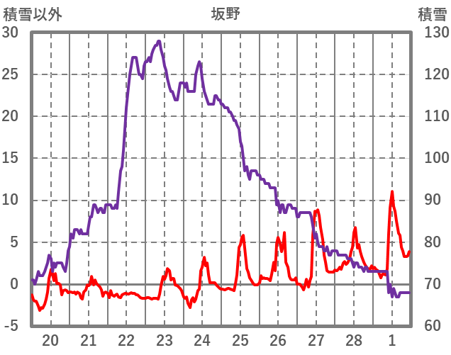 | 日 | 時 | 気温 | 降水 | 風向/風速 | 日照 | 積雪 | 降雪 |