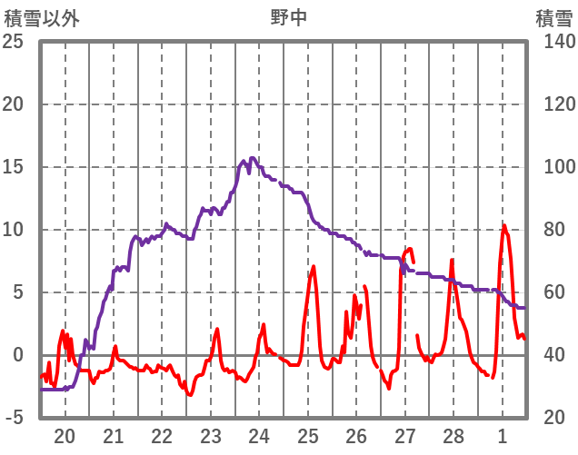 | 日 | 時 | 気温 | 降水 | 風向/風速 | 日照 | 積雪 | 降雪 |