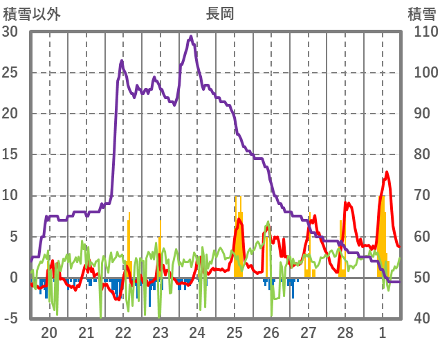 | 日 | 時 | 気温 | 降水 | 風向/風速 | 日照 | 積雪 | 降雪 |