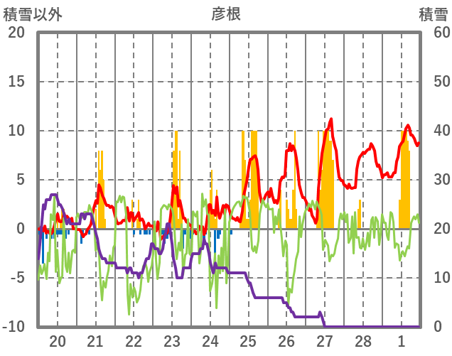 | 日 | 時 | 気温 | 降水 | 風向/風速 | 日照 | 積雪 | 降雪 |