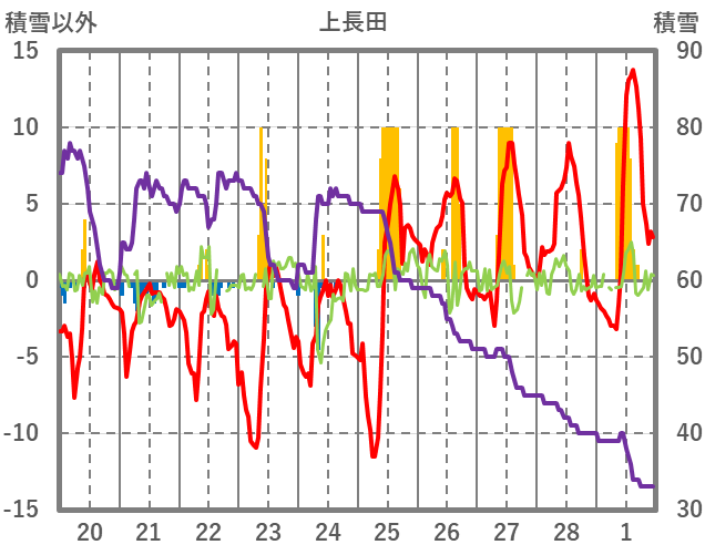 | 日 | 時 | 気温 | 降水 | 風向/風速 | 日照 | 積雪 | 降雪 |