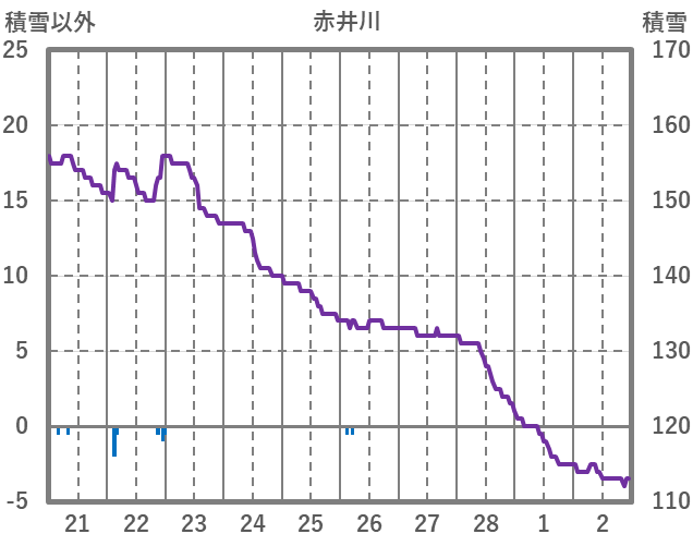 | 日 | 時 | 気温 | 降水 | 風向/風速 | 日照 | 積雪 | 降雪 |
