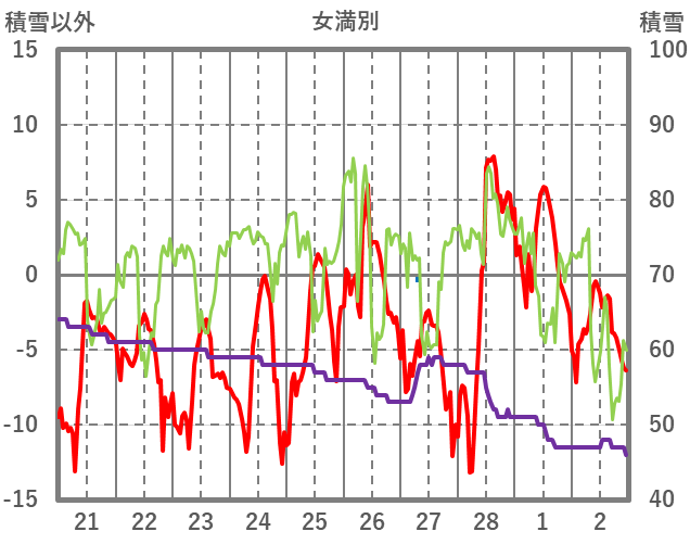 | 日 | 時 | 気温 | 降水 | 風向/風速 | 日照 | 積雪 | 降雪 |