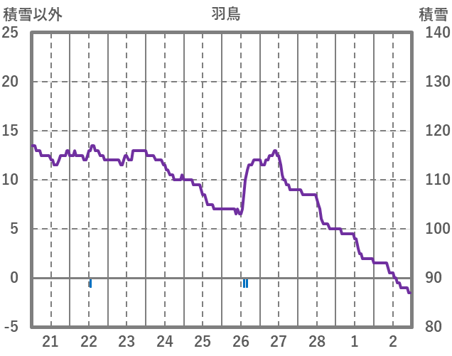 | 日 | 時 | 気温 | 降水 | 風向/風速 | 日照 | 積雪 | 降雪 |