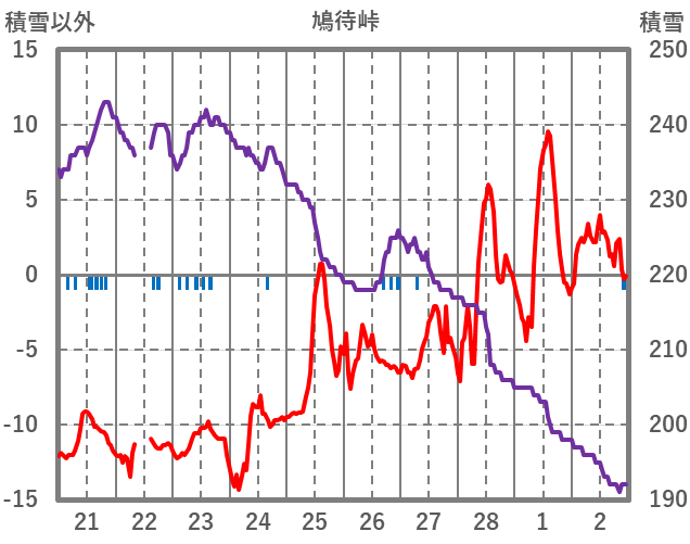 | 日 | 時 | 気温 | 降水 | 風向/風速 | 日照 | 積雪 | 降雪 |