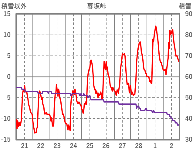 | 日 | 時 | 気温 | 降水 | 風向/風速 | 日照 | 積雪 | 降雪 |