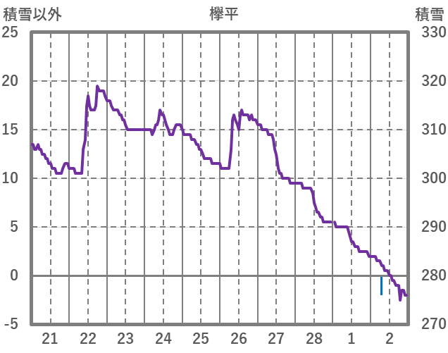 | 日 | 時 | 気温 | 降水 | 風向/風速 | 日照 | 積雪 | 降雪 |