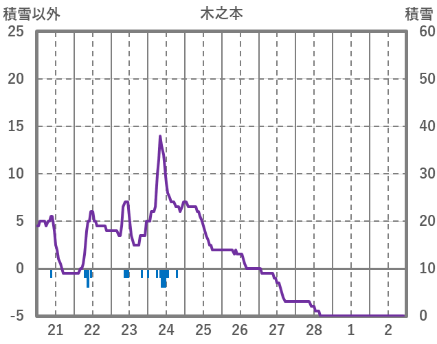 | 日 | 時 | 気温 | 降水 | 風向/風速 | 日照 | 積雪 | 降雪 |