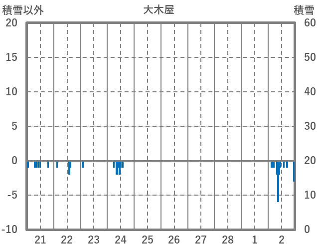 | 日 | 時 | 気温 | 降水 | 風向/風速 | 日照 | 積雪 | 降雪 |