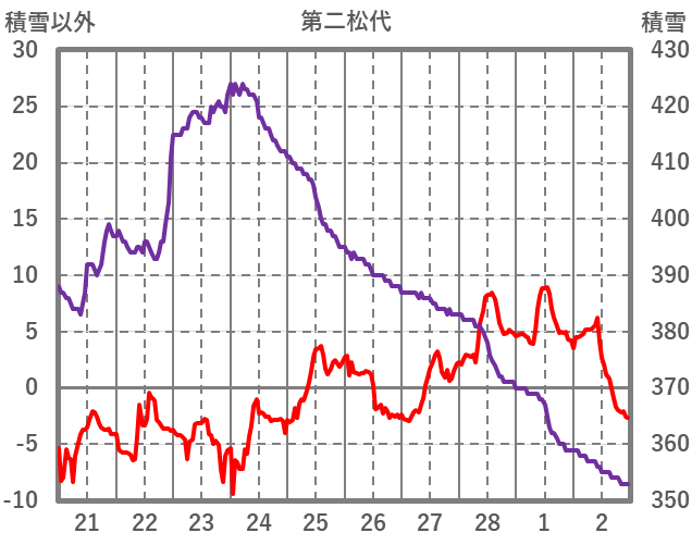| 日 | 時 | 気温 | 降水 | 風向/風速 | 日照 | 積雪 | 降雪 |