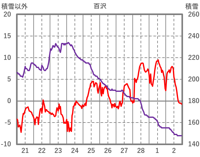 | 日 | 時 | 気温 | 降水 | 風向/風速 | 日照 | 積雪 | 降雪 |