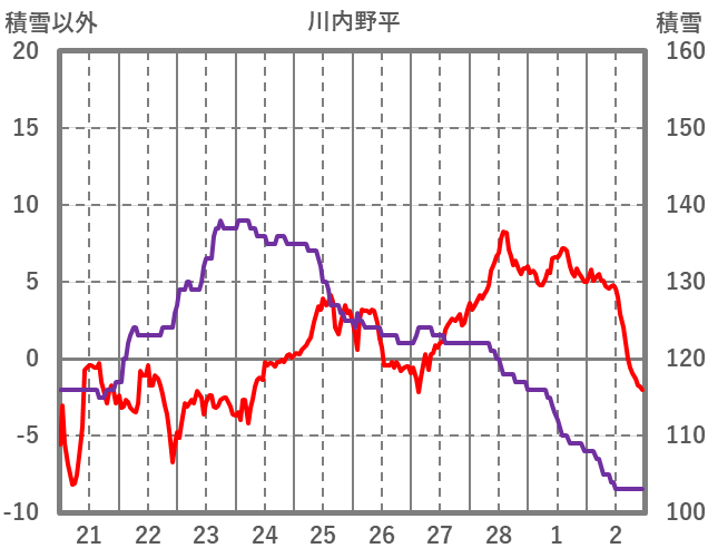 | 日 | 時 | 気温 | 降水 | 風向/風速 | 日照 | 積雪 | 降雪 |