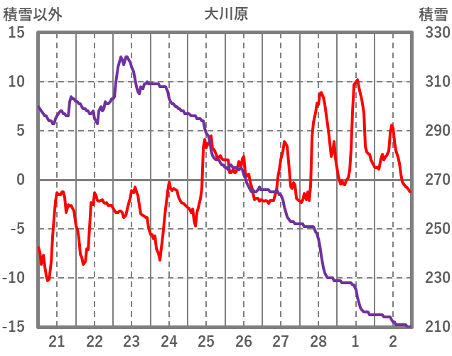 | 日 | 時 | 気温 | 降水 | 風向/風速 | 日照 | 積雪 | 降雪 |