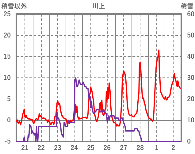 | 日 | 時 | 気温 | 降水 | 風向/風速 | 日照 | 積雪 | 降雪 |