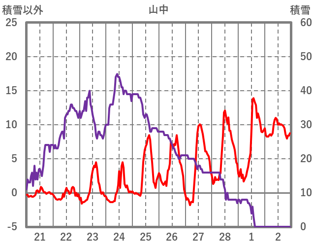 | 日 | 時 | 気温 | 降水 | 風向/風速 | 日照 | 積雪 | 降雪 |