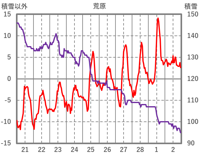 | 日 | 時 | 気温 | 降水 | 風向/風速 | 日照 | 積雪 | 降雪 |