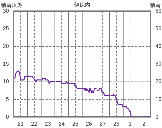 | 日 | 時 | 気温 | 降水 | 風向/風速 | 日照 | 積雪 | 降雪 |