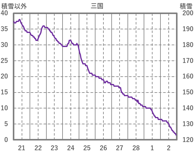 | 日 | 時 | 気温 | 降水 | 風向/風速 | 日照 | 積雪 | 降雪 |