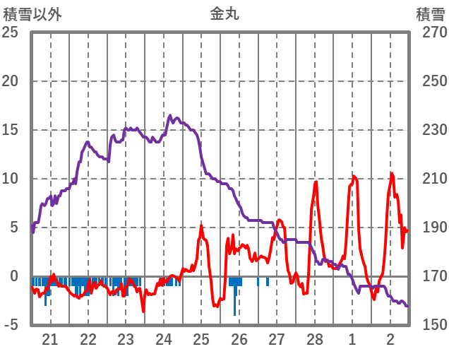| 日 | 時 | 気温 | 降水 | 風向/風速 | 日照 | 積雪 | 降雪 |