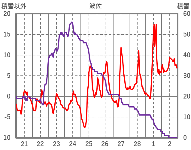 | 日 | 時 | 気温 | 降水 | 風向/風速 | 日照 | 積雪 | 降雪 |