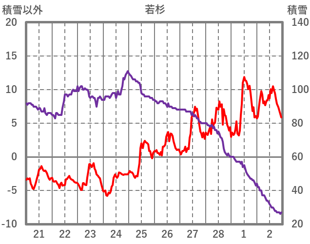 | 日 | 時 | 気温 | 降水 | 風向/風速 | 日照 | 積雪 | 降雪 |