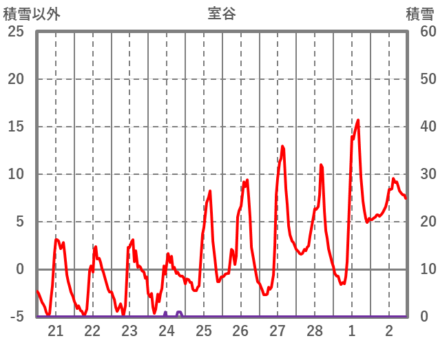 | 日 | 時 | 気温 | 降水 | 風向/風速 | 日照 | 積雪 | 降雪 |