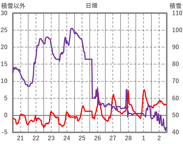 | 日 | 時 | 気温 | 降水 | 風向/風速 | 日照 | 積雪 | 降雪 |