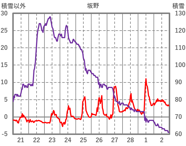 | 日 | 時 | 気温 | 降水 | 風向/風速 | 日照 | 積雪 | 降雪 |