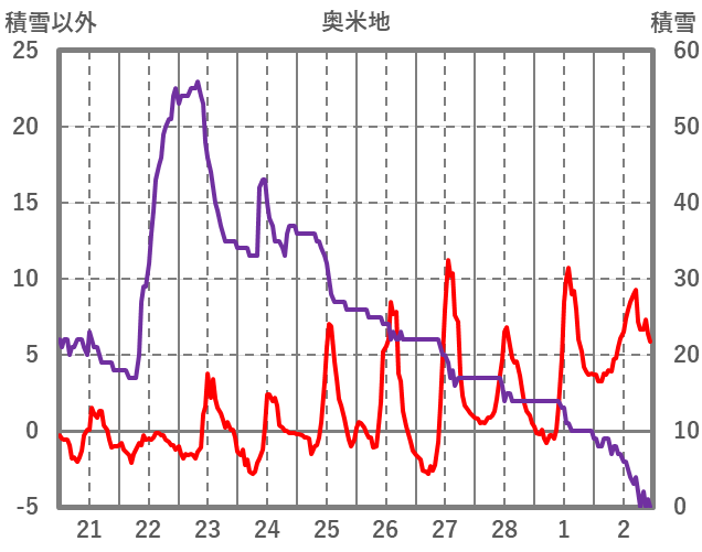 | 日 | 時 | 気温 | 降水 | 風向/風速 | 日照 | 積雪 | 降雪 |