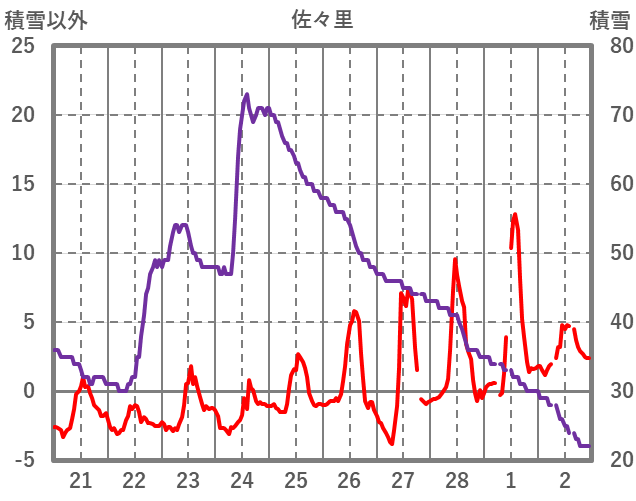 | 日 | 時 | 気温 | 降水 | 風向/風速 | 日照 | 積雪 | 降雪 |