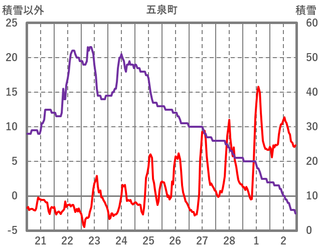 | 日 | 時 | 気温 | 降水 | 風向/風速 | 日照 | 積雪 | 降雪 |