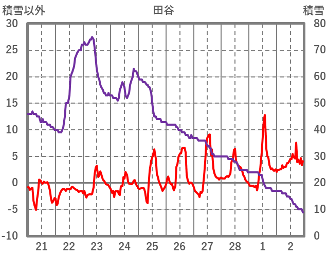 | 日 | 時 | 気温 | 降水 | 風向/風速 | 日照 | 積雪 | 降雪 |