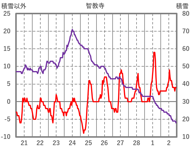| 日 | 時 | 気温 | 降水 | 風向/風速 | 日照 | 積雪 | 降雪 |