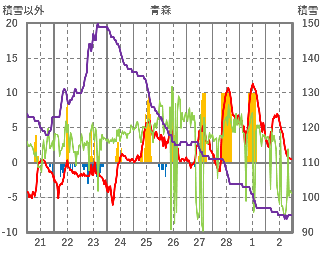 | 日 | 時 | 気温 | 降水 | 風向/風速 | 日照 | 積雪 | 降雪 |