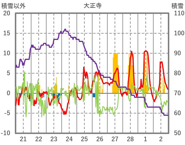 | 日 | 時 | 気温 | 降水 | 風向/風速 | 日照 | 積雪 | 降雪 |