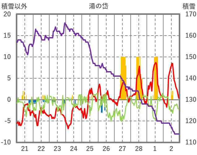 | 日 | 時 | 気温 | 降水 | 風向/風速 | 日照 | 積雪 | 降雪 |