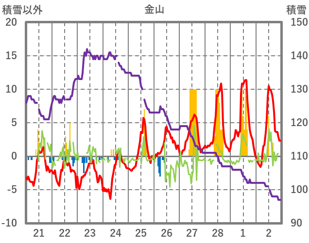| 日 | 時 | 気温 | 降水 | 風向/風速 | 日照 | 積雪 | 降雪 |