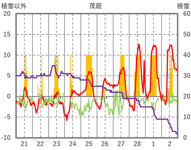 | 日 | 時 | 気温 | 降水 | 風向/風速 | 日照 | 積雪 | 降雪 |