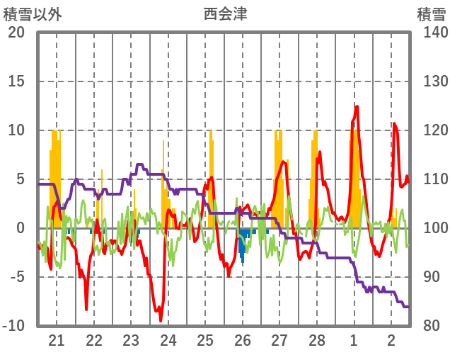 | 日 | 時 | 気温 | 降水 | 風向/風速 | 日照 | 積雪 | 降雪 |