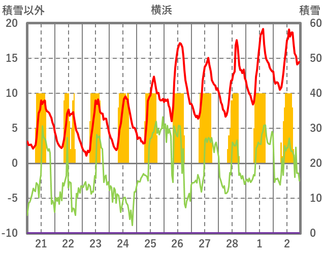 | 日 | 時 | 気温 | 降水 | 風向/風速 | 日照 | 積雪 | 降雪 |