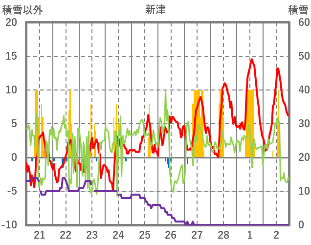 | 日 | 時 | 気温 | 降水 | 風向/風速 | 日照 | 積雪 | 降雪 |