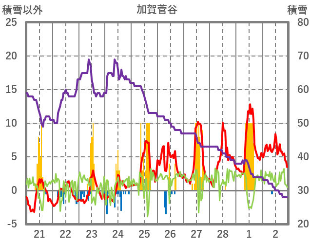 | 日 | 時 | 気温 | 降水 | 風向/風速 | 日照 | 積雪 | 降雪 |