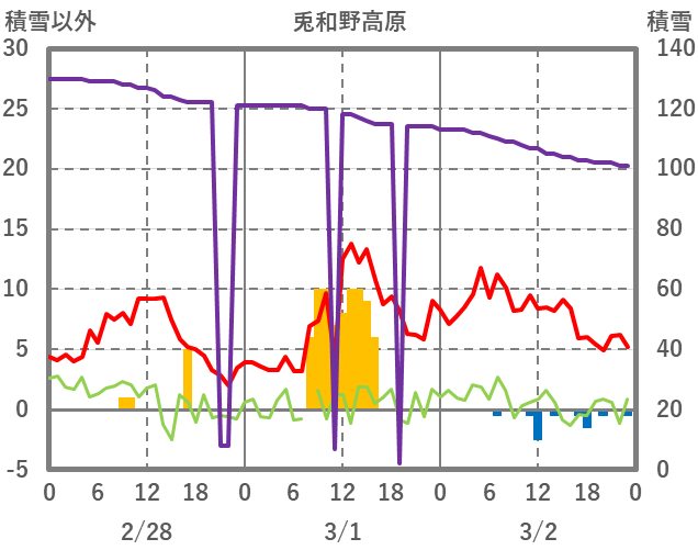 | 日 | 時 | 気温 | 降水 | 風向/風速 | 日照 | 積雪 | 降雪 |