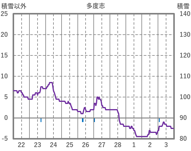 | 日 | 時 | 気温 | 降水 | 風向/風速 | 日照 | 積雪 | 降雪 |
