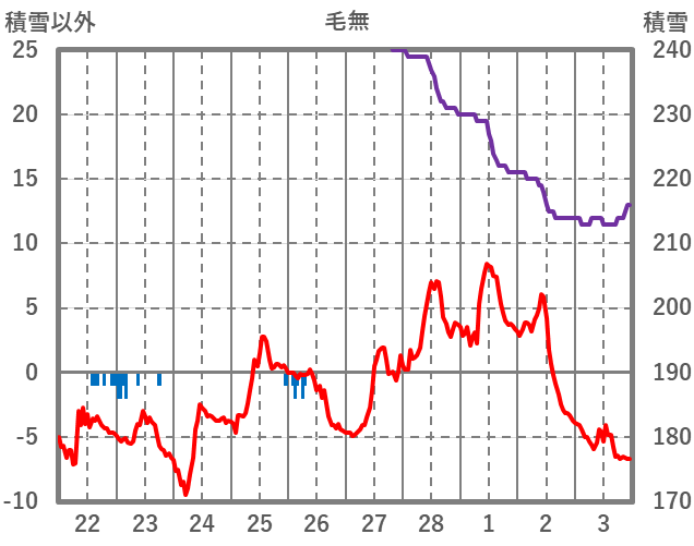 | 日 | 時 | 気温 | 降水 | 風向/風速 | 日照 | 積雪 | 降雪 |