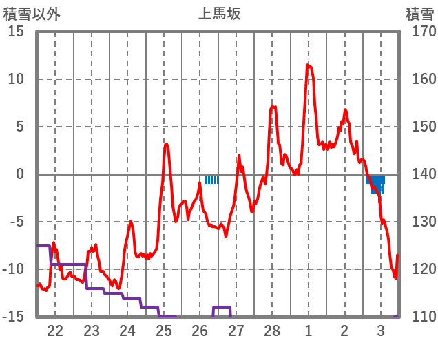| 日 | 時 | 気温 | 降水 | 風向/風速 | 日照 | 積雪 | 降雪 |
