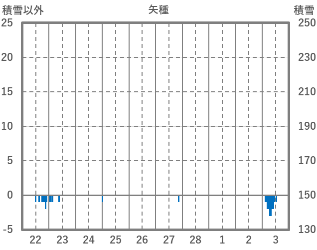 | 日 | 時 | 気温 | 降水 | 風向/風速 | 日照 | 積雪 | 降雪 |